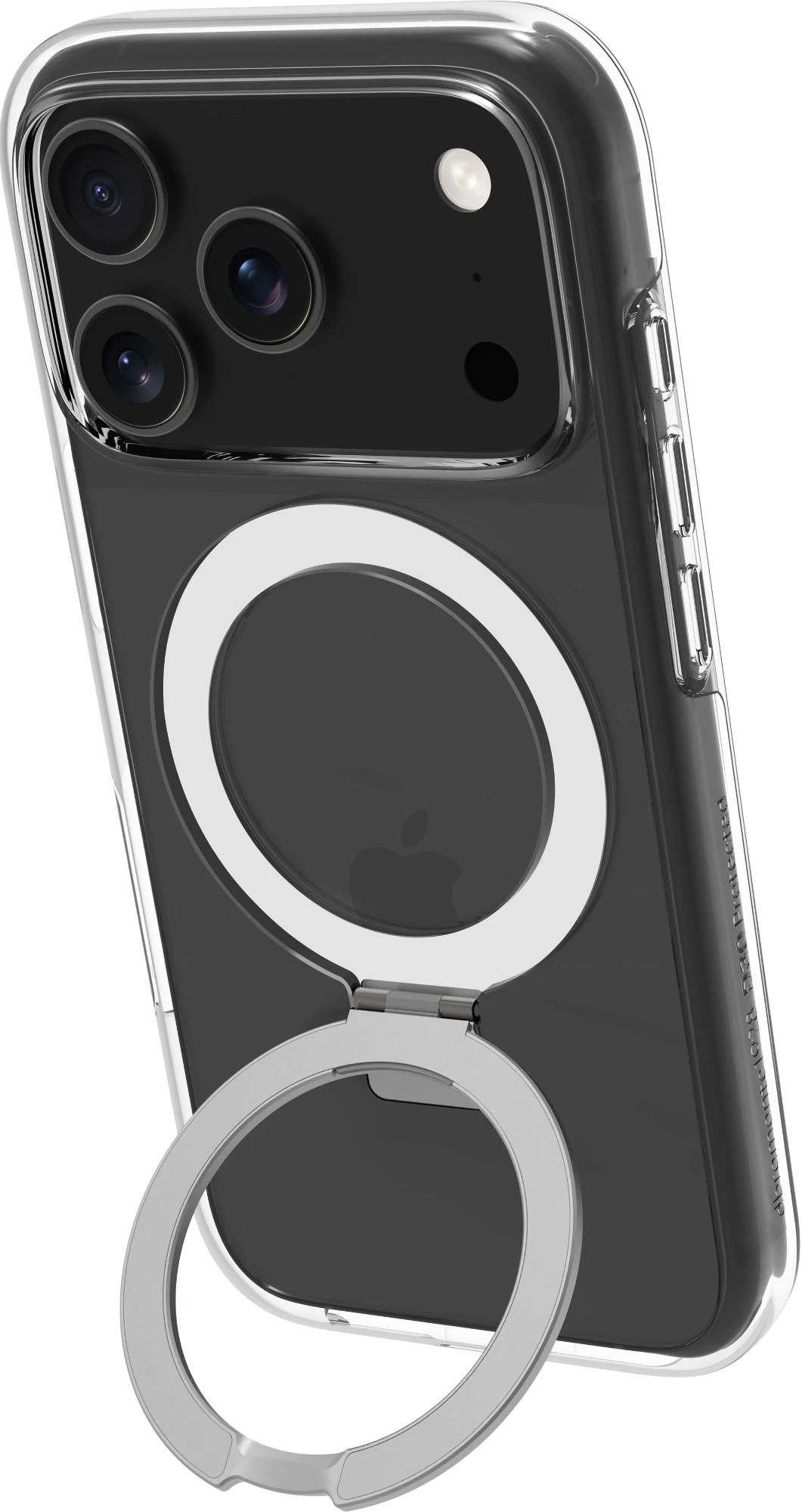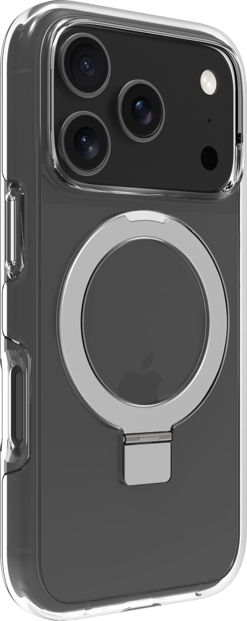 Integrierter MagSafe-Magnet, der nicht nur nahtloses kabelloses Laden und volle Kompatibilität mit MagSafe-Zubehör ermöglicht, sondern auch einen verstellbaren Ständer, der sowohl horizontale als auch vertikale Blickwinkel unterstützt.